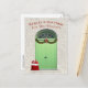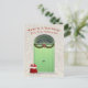 Este diseño de vacaciones de Navidad presenta puertas dobles verdes con una ventana en la parte superior con forma de palladio para un mensaje de nueva casa para las fiestas. Hay una guirnalda de hoja perenne debajo de la ventana y una bolsa de Santa llena de regalos en los escalones. Personalice el texto en la parte delantera y trasera, elimine cualquier texto o haga clic en personalizar para seleccionar un estilo de letra, tamaño y color diferentes.
