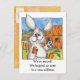 Si se mudó recientemente a un nuevo barrio, este conejo de dibujos animados difundirá la noticia con esta linda postal. El frente dice: "Nos mudamos. Nos trasladamos a una nueva dirección" Otro pequeño conejo en la parte posterior con un globo de pensamiento da la nueva dirección. Todos los campos de texto pueden ser personalizados y editados.