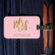 Recién casada Sra. Apellido Relieve metalizado dorado Etiqueta moderna de la bolsa de equipaje. Esta bolsa es perfecta para las vacaciones de luna de miel después del boda. El apellido Mrs. tiene una etiqueta de bolsa de Relieve metalizado plateado Mr.