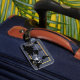 Una idea moderna y elegante para identificar tu equipaje en el aeropuerto... Un simple monograma (iniciales y un plano), tu nombre con palabras relacionadas con viajes personalizados (nuevas aventuras)... y dirección para el contacto en la parte de atrás, con la imagen del mapa del mundo con un marco falso de oro...