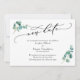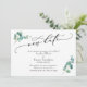 Si sus planes bodas han cambiado inevitablemente, esta tarjeta simple y elegante podría ser la opción perfecta para usted. Con un lujoso tipo de letra caligráfica, el encabezado dice "nueva fecha". Todo lo demás es versátil y se puede editar: cambiar el tipo de letra o los colores de soporte. Las esquinas se acentúan con brotes de hojas de eucalipto de acuarela. Utilice los campos de plantilla para agregar sus datos personales. // 137 //
