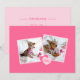 Fotos suaves, envueltas en bonitos de color rosa, hacen de este diseño una manera adorable de anunciar la adopción de su nueva mascota. Siga las plantillas para reemplazar las fotos del marcador de posición por las propias. Puede personalizar los detalles de la invitación en la parte posterior y agregar el nombre de su mascota en la parte delantera. Puede cambiar los estilos, tamaños y color del texto... si lo desea, utilizando el menú personalizar.