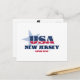 Postal de Nueva Jersey. Un diseño tipográfico creativo que encapsula la esencia de Nueva Jersey con colores rojo, blanco y azul audaces y elementos patrióticos, incluidas estrellas y rayas.