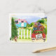 Nos hemos mudado y tenemos una nueva postal de dirección con camper, auto, gato, vintage.