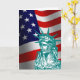 Felicite un amigo o a un pariente con esta tarjeta especial en el día que hacen un nuevo ciudadano de los E.E.U.U. Señora Liberty se coloca orgullosa delante de la bandera de los E.E.U.U. en el frente de esta tarjeta de felicitaciones colorida.