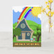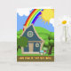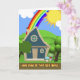 Una nueva y divertida tarjeta de bienvenida con casa personalizado, árboles y paisajes
