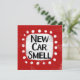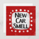 "New Car Smell" es un divertido diseño de texto con una forma de acento blanco rodeado de puntos de textura caprichosos.
