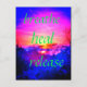 BREATH HEAL POSTCARD con mi foto realzada de color de la puesta de sol rosa a través de las siluetas de árboles en Island Lake State Park