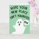 Graciosa tarjeta nueva para el hogar - perfecto para el cambio de hogar! Dice "Espero que tu nueva casa no esté embrujada" con un fantasma ilustrado. En blanco para el mensaje