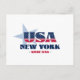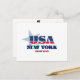 Postal de Nueva York. Un diseño tipográfico creativo que encapsula la esencia de Nueva York con colores rojo, blanco y azul audaces y elementos patrióticos, incluidas estrellas y rayas.
