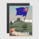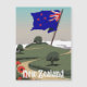 Póster de paisaje de viajes antiguos de Nueva Zelanda.