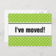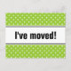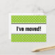 Nuevas postales de mudanzas domésticas | polkadots verde manzana. Personalizado moviendo texto; ¡Nos hemos movido! Añade tu nueva dirección en la parte posterior. Tarjetas móviles modernas para el hogar y el negocio.