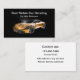 Las tarjetas de visita para automóviles más coquetas son el tema del detalle móvil con un gráfico de una tarjeta brillante y elegante en el fondo de esta tarjeta de visita doble que puede usar como tarjeta de llamada con los clientes. Alternativamente, puede usar esto como tarjeta de visita para un mecánico de coches o una tienda de autocares.
