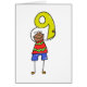 Ilustracion caprichoso de un niñito con un símbolo número nueve. Tal vez tenga nueve años o tal vez esté aprendiendo a contar. Imagen disponible en varios regalos y productos.