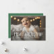 ¡Más alegría este año! Si su Navidad es mucho más alegre este año que antes, esta es la tarjeta de anuncio de nacimiento perfecta para las fiestas. Con una foto y texto divertido y juguetón en la parte delantera, es una excelente manera de mostrar a su familia y enviar saludos navideños. Hay mucho espacio para texto personalizado y el respaldo verde está salpicado de estrellas y puntos coincidentes. La parte posterior también tiene espacio para una segunda foto y presentación de su nuevo bebé. Encuentre piezas coordinadas y otros colores y estilos en la colección de Lea Delaveris Design. Esta tarjeta también está disponible como descarga digital de anuncio de nacimiento navideño.