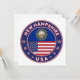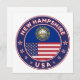 Insignia de New Hampshire con bandera de New Hampshire y bandera de los colores de Estados Unidos, forma redondeada. Emblema de New Hampshire. Sello de New Hampshire. Colección de Estados Unidos.