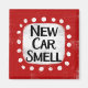 "New Car Smell" es un divertido diseño de texto con una forma de acento blanco rodeado de puntos de textura caprichosos.