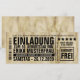 tarjeta nueva de invitación a 50. Cumpleaños con el diseño de un boleto antiguo con barra código.