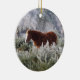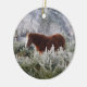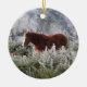 Ornamento con las fotos de los potros que pastan la tierra escarchada de nuevas imágenes del bosque