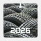 Fotografía de neumáticos nuevos empacados juntos. año/texto del personalizable.