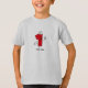 Un gran número rojo con ojos, brazos y piernas en camisetas de cumpleaños número 1, tazas, tarjetas, pegatinas, keepsakes y otros equipos de cumpleaños.