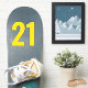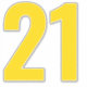 Número Veintiuno. Número 21 Número individual como pegatina. Oro y blanco. 8 x 8 pulgadas