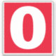 Número cero. Número 0 Número individual como pegatina. Rojo y blanco.