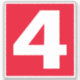Número cuatro. Número 4 Número individual como pegatina. Rojo y blanco.
