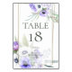 Tarjeta de Número de Mesa de Boda | | Formas geométricas doradas con hojas de eucalipto en acuarela, anémonas lilas y violetas y flores de hortensia, un marco estilo terrario geométrico dorado multifacético adornado con ramos florales. Esto es parte de un conjunto completo de Papelería de Boda con papelería de boda, baby shower y otros eventos coincidentes.