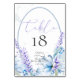 Tarjeta de Número de Mesa de Boda | Flores de lavanda de acuarela fresca y limpia de primavera con flores azules polvorientas y bayas. El reverso es un color complementario coordinado. Personalice el texto, el estilo de fuente, el color y el tamaño. Diseño creado para BarefootBride™ por © WhimsicalArtwork™ - Esta es parte de una suite completa de papelería de boda con papelería de boda, baby shower y otros eventos.