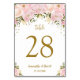 Tarjeta de número de mesa de boda femenina rosa y dorada con flores de acuarela rosadas y blush y purpurina dorada