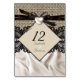 Tarjetas de Número de Mesa Boda Rústica Arpillera Encaje Perla Corazón Seda 2, vintage, campo, arpillera