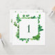 Número de mesa con follaje verde. Boda de vegetaci
