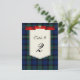 Tarjeta de número de mesa de boda con hermoso cuadros escoceses de tartán de los colores azul, verde, amarillo y rojo del clan Smith. Un área de texto de color crema decorativa en el medio tiene gráficos de una cinta de estilo bandera de satén rojo en la parte superior. Gráficos de un símbolo de amor escocés Luckenbooth de tono dorado decoran el medio de la cinta. El texto en negro es totalmente personalizable para adaptarse a las necesidades de su recepción. Productos de boda a juego disponibles. Personalice una para cada mesa en la recepción de su boda.