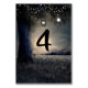 Linternas bonitas de noche de luna llena en la tarjeta del número de mesa de boda en el árbol.
