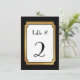 Tarjeta plana de número de mesa de recepción de boda personalizada y elegante. Hecha en un marco negro estilo Art Deco junto a un marco más delgado de tono dorado que bordea el área de texto blanco. El texto negro está listo para personalizarse para cada mesa en su boda.
