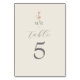Este número de mesa de boda combina el encanto rústico con la sofisticación elegante, con un acento moderno. Adornado con un monograma floral de primavera en acuarela en la parte superior, el diseño se destaca por una escritura en gris claro que agrega un toque sofisticado. Perfectamente adecuado para una celebración con tema de flores silvestres, aporta un ambiente cálido y contemporáneo a la decoración de su mesa.