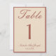 Números de mesa de boda de terracota y beige de dinero antiguo elegantes y clásicos. Como puede ver, presenta un fondo de dinero antiguo crema con escritura de terracota polvorienta que coincide con todo el conjunto.