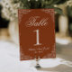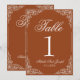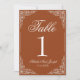 Números de mesa de boda de terracota blanca y naranja quemada de dinero antiguo con clase y elegancia. Como puede ver, cuenta con un fondo blanco de dinero antiguo con letra rústica blanca que coincide con todo el conjunto. Y marco floral verde.