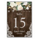 Crea tu propia tarjeta de número de mesa con esta plantilla de "Tarjeta de mesa rústica de madera con encaje floral chic" para que coincida con los colores y el estilo de tu boda.