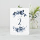 Número de mesa de boda con acuarela azul