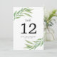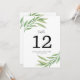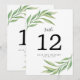 Esta tarjeta de número de mesa de recepción de boda con tema botánico presenta una acuarela original pintada a mano de hojas de laurel en esquinas opuestas. Los colores están en diferentes tonos de verde y es a doble cara. Para consultas sobre cambios de diseño personalizado por el diseñador independiente, por favor envíe un correo electrónico a paula@labellarue.com ANTES de personalizar o realizar un pedido.