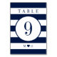 Tarjeta de número de mesa con tema de rayas náuticas para su próximo evento de boda.