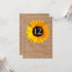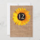 Tarjeta de número de mesa de recepción de boda rústica chic, hecha en un aspecto de arpillera marrón, con gráficos de un girasol amarillo bonito grande. Personalice el número para cada mesa en su recepción. Están disponibles productos de boda a juego.