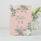 Número de mesa de boda de eucalipto rosa floral