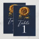 Número de Mesa de Boda de Girasol Rústico Azul