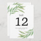 Esta tarjeta de número de mesa de recepción de boda con tema botánico presenta una acuarela original pintada a mano de hojas de laurel en esquinas opuestas. Los colores están en diferentes tonos de verde y es a doble cara. Para consultas sobre cambios de diseño personalizado por el diseñador independiente, por favor envíe un correo electrónico a paula@labellarue.com ANTES de personalizar o realizar un pedido.