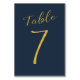 Tarjeta de mesa de recepción de boda con caligrafía formal de falso papel de aluminio dorado. El color de fondo azul marino es editable. Puedes cambiarlo después de pulsar el botón PERSONALIZAR.