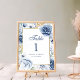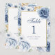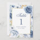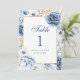 Número de Mesa de Boda Floral Azul y Dorado Modern