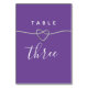 Ayude a los invitados a encontrar sus asientos con estilo con esta tarjeta de número de mesa de boda morada elegante. Con un fondo violeta chic, un corazón de cuerda plateada romántico y una tipografía de caligrafía sofisticada, este diseño minimalista complementa perfectamente una configuración de recepción de boda moderna y atemporal.